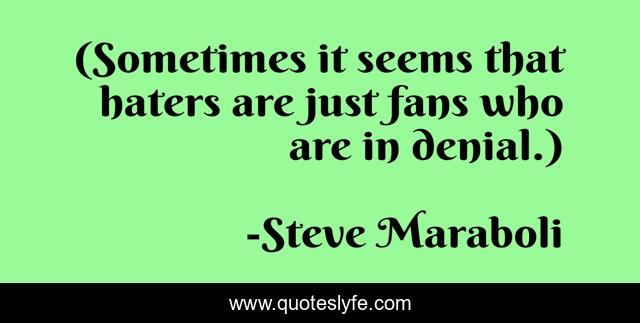 This page presents the quote "(Sometimes it seems that haters are just fans who are in denial.)". Author of this quote is Steve Maraboli. This quote is about fans, denial, haters,.