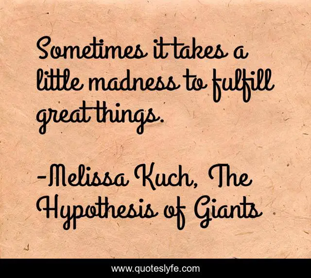 "Melissa Kuch, The Hypothesis of Giants Quotes." Quoteslyfe.com, 2025. Sat. 06 Dec. 2025. <https://www.quoteslyfe.com/quote/Sometimes-it-takes-a-little-madness-to-151844>.