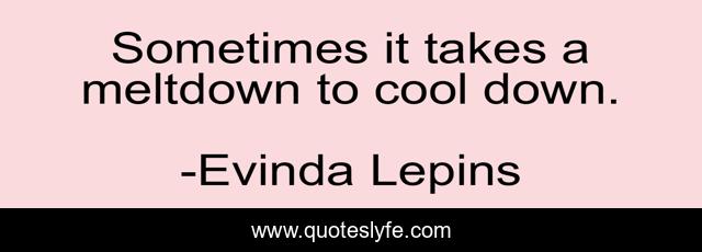 This page presents the quote "Sometimes it takes a meltdown to cool down.". Author of this quote is Evinda Lepins. This quote is about cool-down, life, meltdown, quotes,.