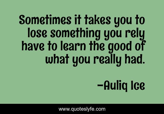 This page presents the quote "Sometimes it takes you to lose something you rely have to learn the good of what you really had.". Author of this quote is Auliq Ice. This quote is about values-in-life, values, value,.