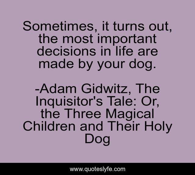 This page presents the quote "Sometimes, it turns out, the most important decisions in life are made by your dog.". Author of this quote is Adam Gidwitz, The Inquisitor's Tale: Or, the Three Magical Children and Their Holy Dog. .