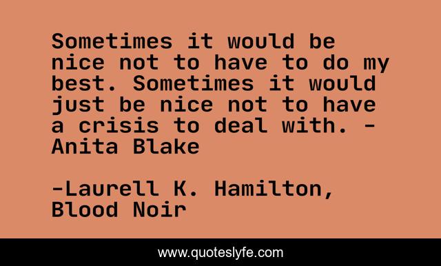 This page presents the quote "Sometimes it would be nice not to have to do my best. Sometimes it would just be nice not to have a crisis to deal with. - Anita Blake". Author of this quote is Laurell K. Hamilton, Blood Noir. This quote is about vampires, anita,.