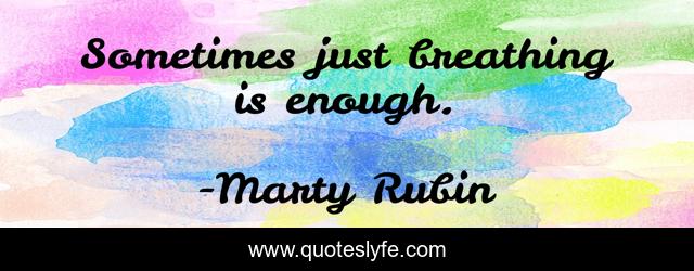 This page presents the quote "Sometimes just breathing is enough.". Author of this quote is Marty Rubin. This quote is about enough, breathing, contentment,.