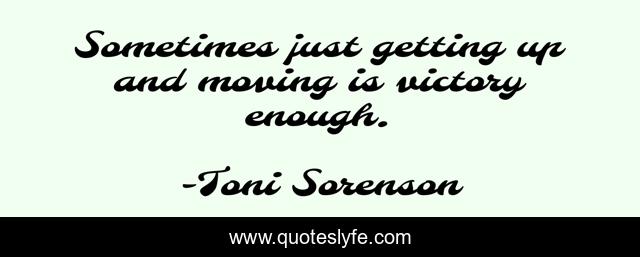 This page presents the quote "Sometimes just getting up and moving is victory enough.". Author of this quote is Toni Sorenson. This quote is about fitness, health, victory, success, exercise,.