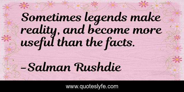 This page presents the quote "Sometimes legends make reality, and become more useful than the facts.". Author of this quote is Salman Rushdie. This quote is about fiction, legends, myth, writing,.