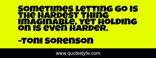 "Toni Sorenson Quotes." Quoteslyfe.com, 2025. Sat. 06 Dec. 2025. <https://www.quoteslyfe.com/quote/Sometimes-letting-go-is-the-hardest-thing-223639>.