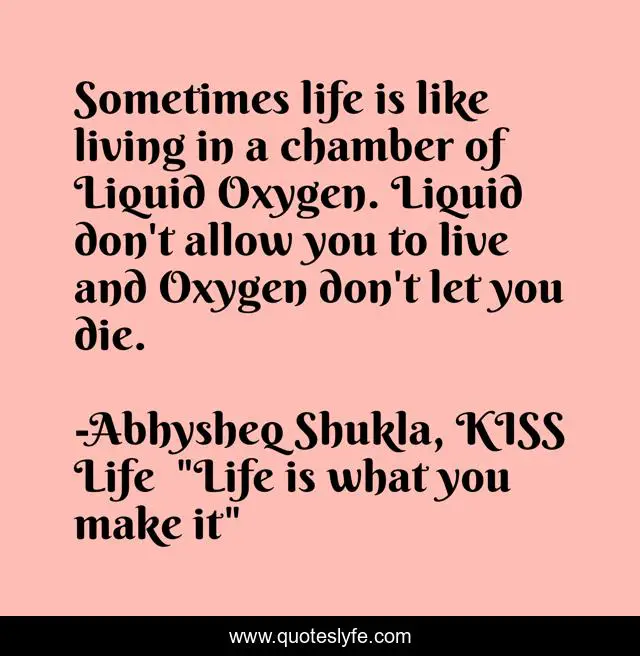 Sometimes life is like living in a chamber of Liquid Oxygen. Liquid don't allow you to live and Oxygen don't let you die.