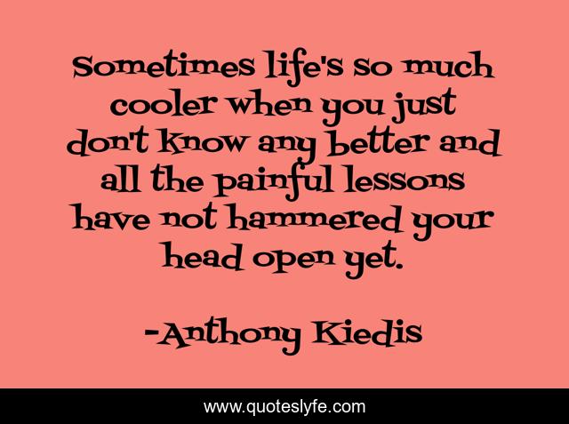 This page presents the quote "Sometimes life's so much cooler when you just don't know any better and all the painful lessons have not hammered your head open yet.". Author of this quote is Anthony Kiedis. This quote is about better, life,.