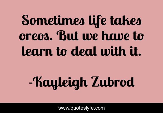 This page presents the quote "Sometimes life takes oreos. But we have to learn to deal with it.". Author of this quote is Kayleigh Zubrod. .