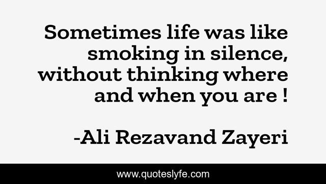 This page presents the quote "Sometimes life was like smoking in silence, without thinking where and when you are !". Author of this quote is Ali Rezavand Zayeri. This quote is about smoking, life, life-lessons, time,.