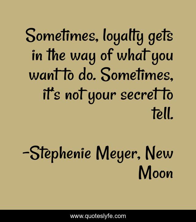 This page presents the quote "Sometimes, loyalty gets in the way of what you want to do. Sometimes, it’s not your secret to tell.". Author of this quote is Stephenie Meyer, New Moon. This quote is about confidences, secrets, sharing-secrets,.