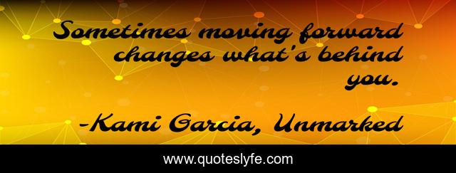 "Kami Garcia, Unmarked Quotes." Quoteslyfe.com, 2025. Sun. 07 Dec. 2025. <https://www.quoteslyfe.com/quote/Sometimes-moving-forward-changes-what-s-behind-110309>.