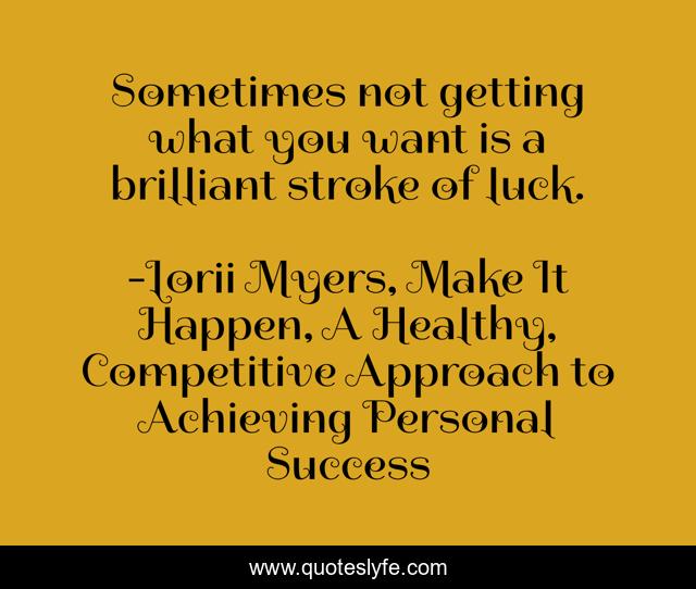 This page presents the quote "Sometimes not getting what you want is a brilliant stroke of luck.". Author of this quote is Lorii Myers, Make It Happen, A Healthy, Competitive Approach to Achieving Personal Success. This quote is about life, make-it-happen, golf, success, winning, luck,.