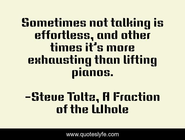 This page presents the quote "Sometimes not talking is effortless, and other times it’s more exhausting than lifting pianos.". Author of this quote is Steve Toltz, A Fraction of the Whole. .
