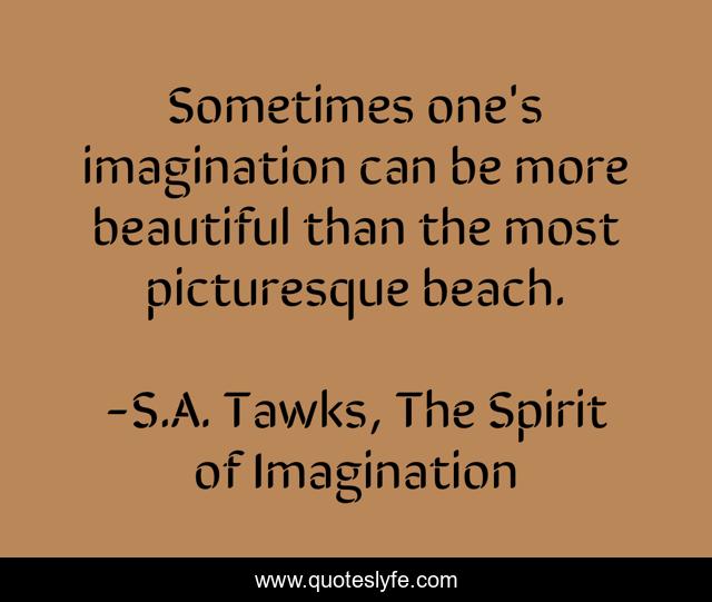 This page presents the quote "Sometimes one's imagination can be more beautiful than the most picturesque beach.". Author of this quote is S.A. Tawks, The Spirit of Imagination. This quote is about imagination, books, reading, writing,.