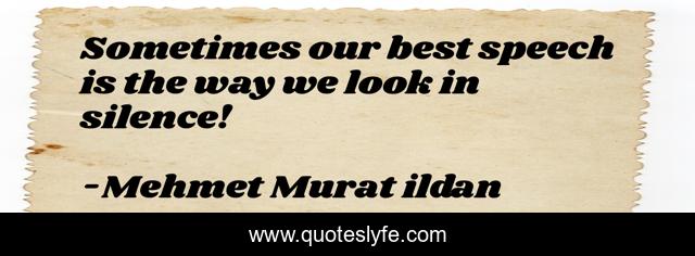 This page presents the quote "Sometimes our best speech is the way we look in silence!". Author of this quote is Mehmet Murat ildan. This quote is about best-speech, mehmet-murat-ildan, ildan-wise-sayings, turkish, ildan-wisdom, turkish-playwrights, turkish-wisdom-words, turkish-writers, turkish-literature,.