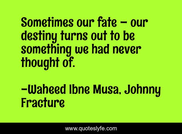 "Waheed Ibne Musa, Johnny Fracture Quotes." Quoteslyfe.com, 2025. Sat. 06 Dec. 2025. <https://www.quoteslyfe.com/quote/Sometimes-our-fate-our-destiny-turns-out-107366>.
