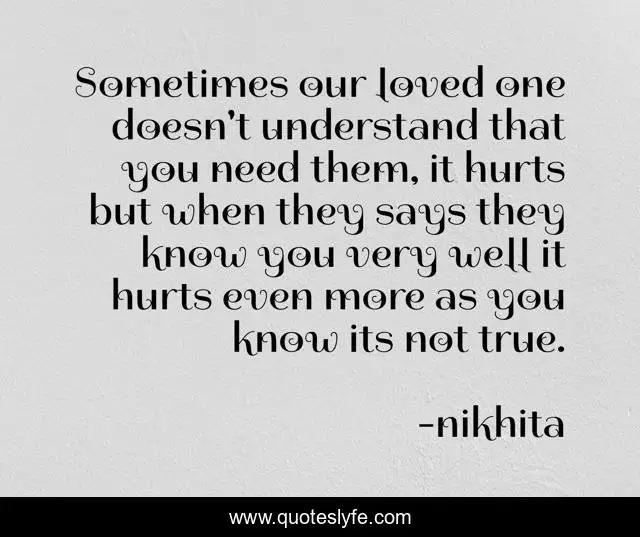 This page presents the quote "Sometimes our loved one doesn't understand that you need them, it hurts but when they says they know you very well it hurts even more as you know its not true.". Author of this quote is nikhita. This quote is about truth-of-life, truth,.