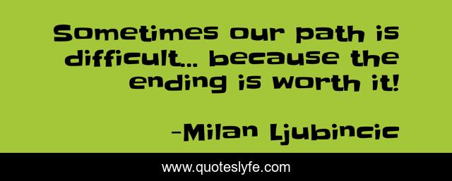 This page presents the quote "Sometimes our path is difficult... because the ending is worth it!". Author of this quote is Milan Ljubincic. This quote is about life-lesson, life, worth, inspiration,.