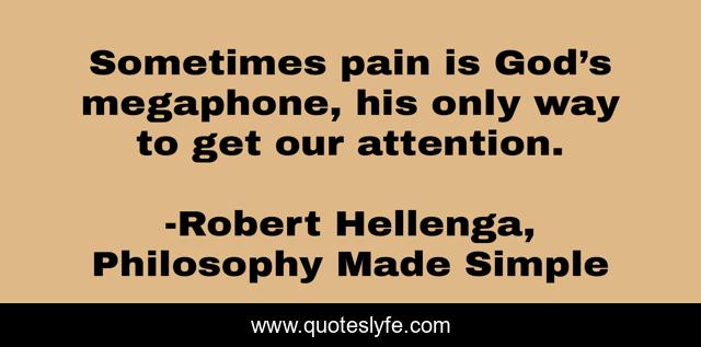 This page presents the quote "Sometimes pain is God’s megaphone, his only way to get our attention.". Author of this quote is Robert Hellenga, Philosophy Made Simple. This quote is about god, attention, pain,.