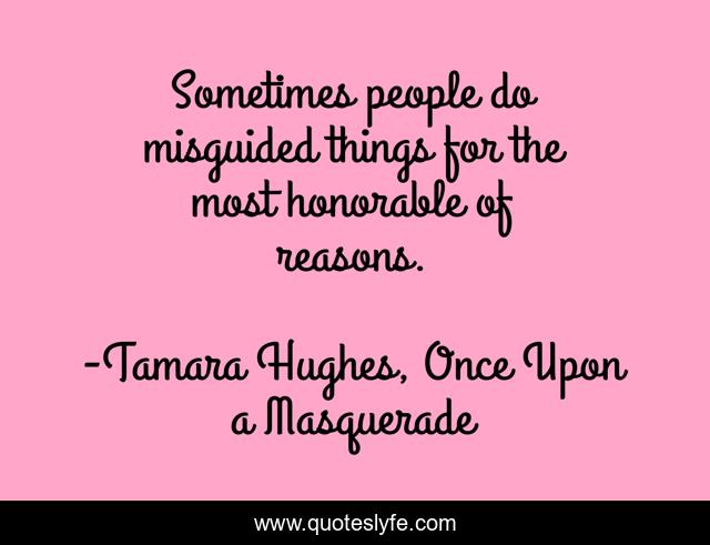 This page presents the quote "Sometimes people do misguided things for the most honorable of reasons.". Author of this quote is Tamara Hughes, Once Upon a Masquerade. This quote is about mystery, historical-romance, cinderella, romance, victorian, new-york-city, historical,.