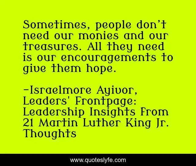"Israelmore Ayivor, Leaders' Frontpage: Leadership Insights from 21 Martin Luther King Jr. Thoughts Quotes." Quoteslyfe.com, 2025. Tue. 09 Dec. 2025. <https://www.quoteslyfe.com/quote/Sometimes-people-don-t-need-our-monies-29254>.