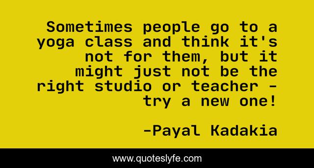 This page presents the quote "Sometimes people go to a yoga class and think it's not for them, but it might just not be the right studio or teacher - try a new one!". Author of this quote is Payal Kadakia. This quote is about try, think, people,.