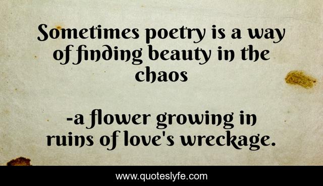 This page presents the quote "Sometimes poetry is a way of finding beauty in the chaos". Author of this quote is a flower growing in ruins of love's wreckage.. .