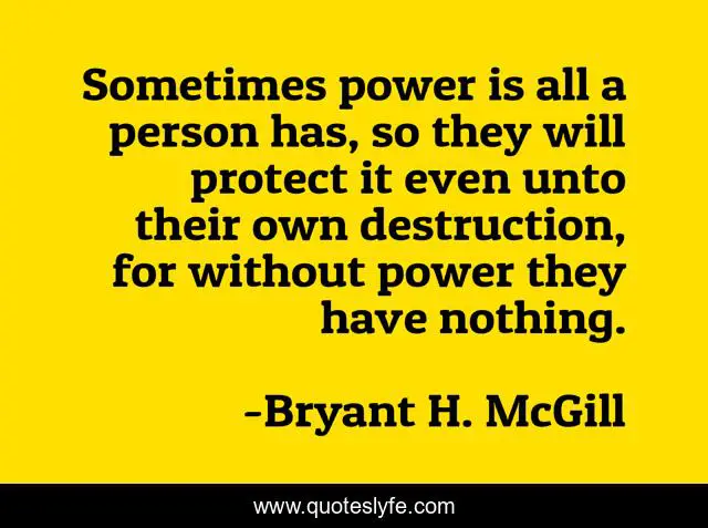 "Bryant H. McGill Quotes." Quoteslyfe.com, 2025. Sun. 07 Dec. 2025. <https://www.quoteslyfe.com/quote/Sometimes-power-is-all-a-person-has-305372>.