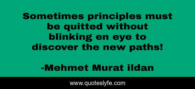 This page presents the quote "Sometimes principles must be quitted without blinking en eye to discover the new paths!". Author of this quote is Mehmet Murat ildan. .