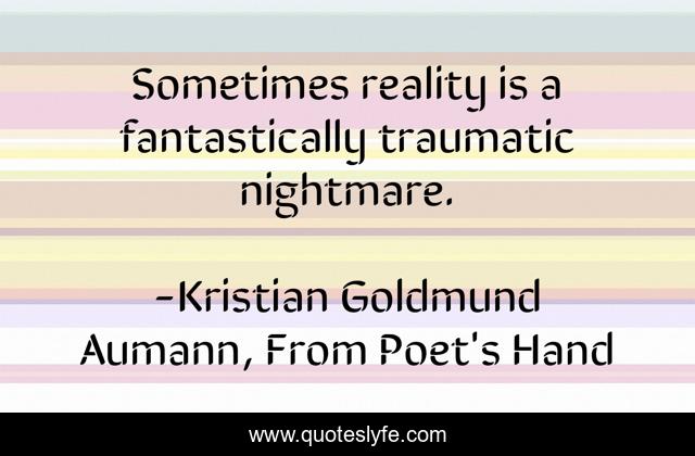 "Kristian Goldmund Aumann, From Poet's Hand Quotes." Quoteslyfe.com, 2025. Mon. 08 Dec. 2025. <https://www.quoteslyfe.com/quote/Sometimes-reality-is-a-fantastically-traumatic-nightmare-240070>.