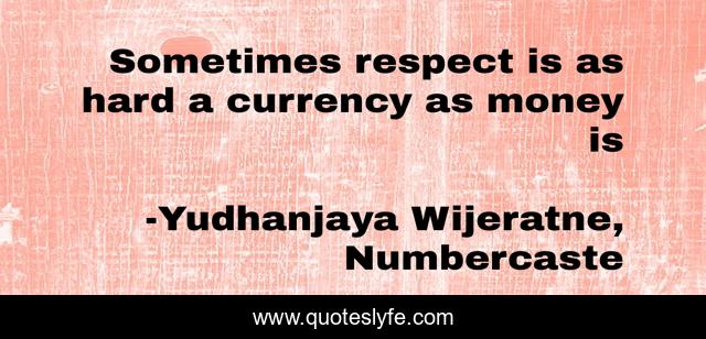 This page presents the quote "Sometimes respect is as hard a currency as money is". Author of this quote is Yudhanjaya Wijeratne, Numbercaste. This quote is about money, life, respect,.