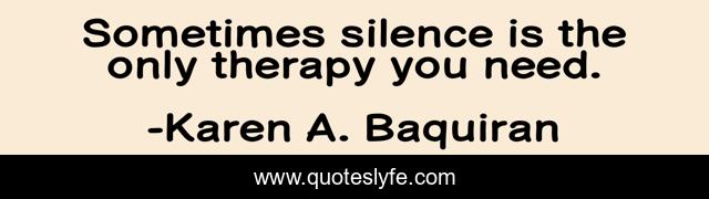 This page presents the quote "Sometimes silence is the only therapy you need.". Author of this quote is Karen A. Baquiran. This quote is about loveyourselfmovement, therapy, silence,.