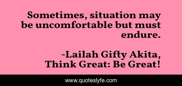 "Lailah Gifty Akita, Think Great: Be Great! Quotes." Quoteslyfe.com, 2025. Sun. 07 Dec. 2025. <https://www.quoteslyfe.com/quote/Sometimes-situation-may-be-uncomfortable-but-must-279778>.