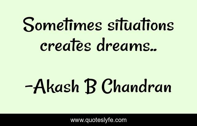 This page presents the quote "Sometimes situations creates dreams..". Author of this quote is Akash B Chandran. This quote is about situations, dreams,.