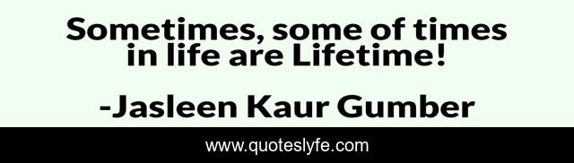 This page presents the quote "Sometimes, some of times in life are Lifetime!". Author of this quote is Jasleen Kaur Gumber. This quote is about realisation, life, thinking, abstract, meaning, truth, time, lifetime, thoughts,.