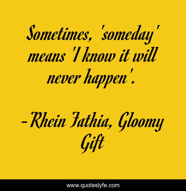 "Rhein Fathia, Gloomy Gift Quotes." Quoteslyfe.com, 2025. Fri. 05 Dec. 2025. <https://www.quoteslyfe.com/quote/Sometimes-someday-means-I-know-it-will-217554>.