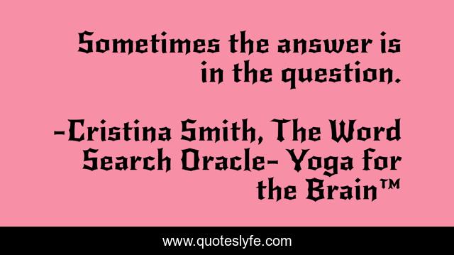 "Cristina Smith, The Word Search Oracle- Yoga for the Brain™ Quotes." Quoteslyfe.com, 2025. Fri. 05 Dec. 2025. <https://www.quoteslyfe.com/quote/Sometimes-the-answer-is-in-the-question-210677>.