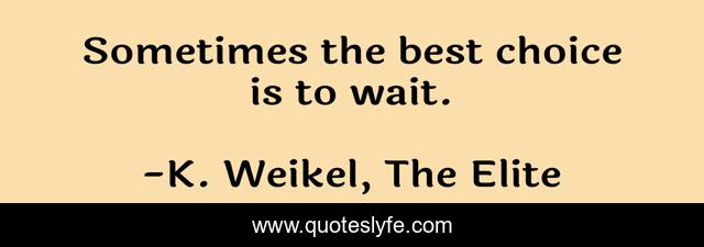 This page presents the quote "Sometimes the best choice is to wait.". Author of this quote is K. Weikel, The Elite. This quote is about patience, wait,.