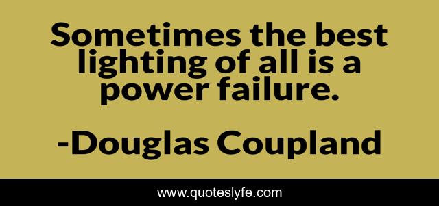 This page presents the quote "Sometimes the best lighting of all is a power failure.". Author of this quote is Douglas Coupland. This quote is about sometimes, best, power,.