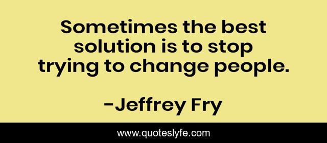 This page presents the quote "Sometimes the best solution is to stop trying to change people.". Author of this quote is Jeffrey Fry. This quote is about people, sometimes, stop, solution, change, trying, best,.