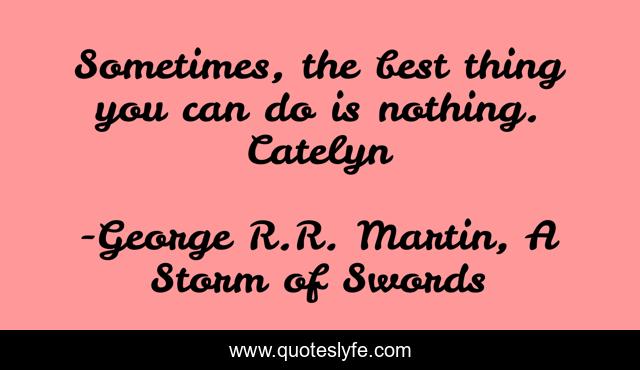 This page presents the quote "Sometimes, the best thing you can do is nothing. Catelyn". Author of this quote is George R.R. Martin, A Storm of Swords. This quote is about enthusiasm, philosophical, inspirational,.