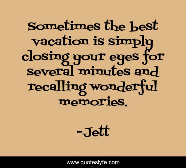 This page presents the quote "Sometimes the best vacation is simply closing your eyes for several minutes and recalling wonderful memories.". Author of this quote is Jett. .