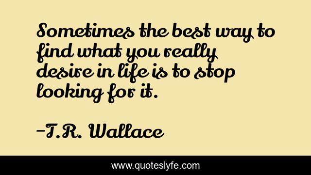 This page presents the quote "Sometimes the best way to find what you really desire in life is to stop looking for it.". Author of this quote is T.R. Wallace. .