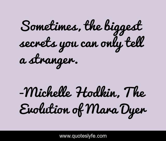 This page presents the quote "Sometimes, the biggest secrets you can only tell a stranger.". Author of this quote is Michelle Hodkin, The Evolution of Mara Dyer. .