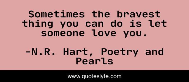 This page presents the quote "Sometimes the bravest thing you can do is let someone love you.". Author of this quote is N.R. Hart, Poetry and Pearls. This quote is about heart, love, soul, romance, passion, bravery, soulmate, affection,.