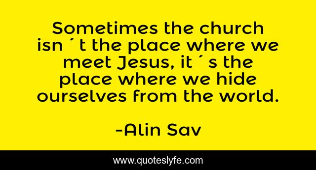 This page presents the quote "Sometimes the church isn´t the place where we meet Jesus, it´s the place where we hide ourselves from the world.". Author of this quote is Alin Sav. .