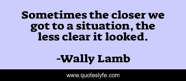 This page presents the quote "Sometimes the closer we got to a situation, the less clear it looked.". Author of this quote is Wally Lamb. This quote is about insight, perspective, perception, understanding,.