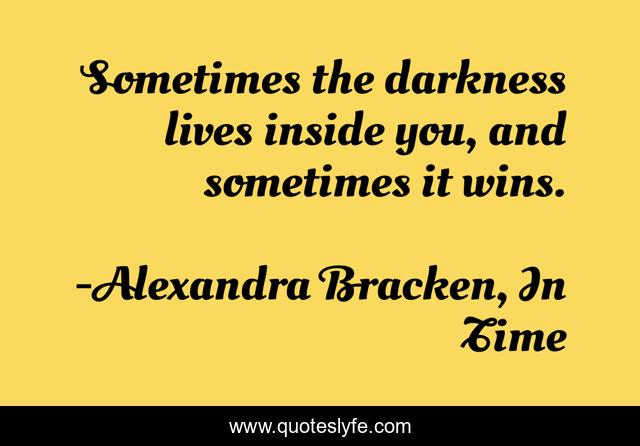 This page presents the quote "Sometimes the darkness lives inside you, and sometimes it wins.". Author of this quote is Alexandra Bracken, In Time. .