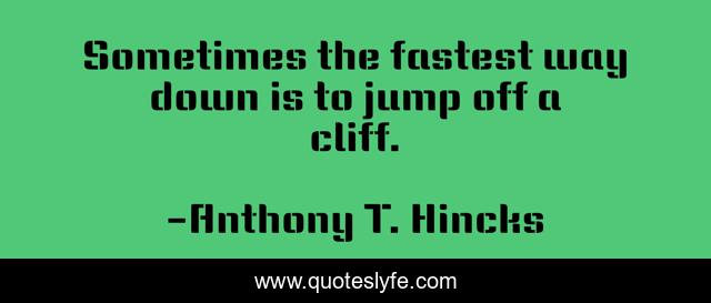 This page presents the quote "Sometimes the fastest way down is to jump off a cliff.". Author of this quote is Anthony T. Hincks. This quote is about life, slow, philosophy, fast, sometimes, down, way, jump-off, speed,.